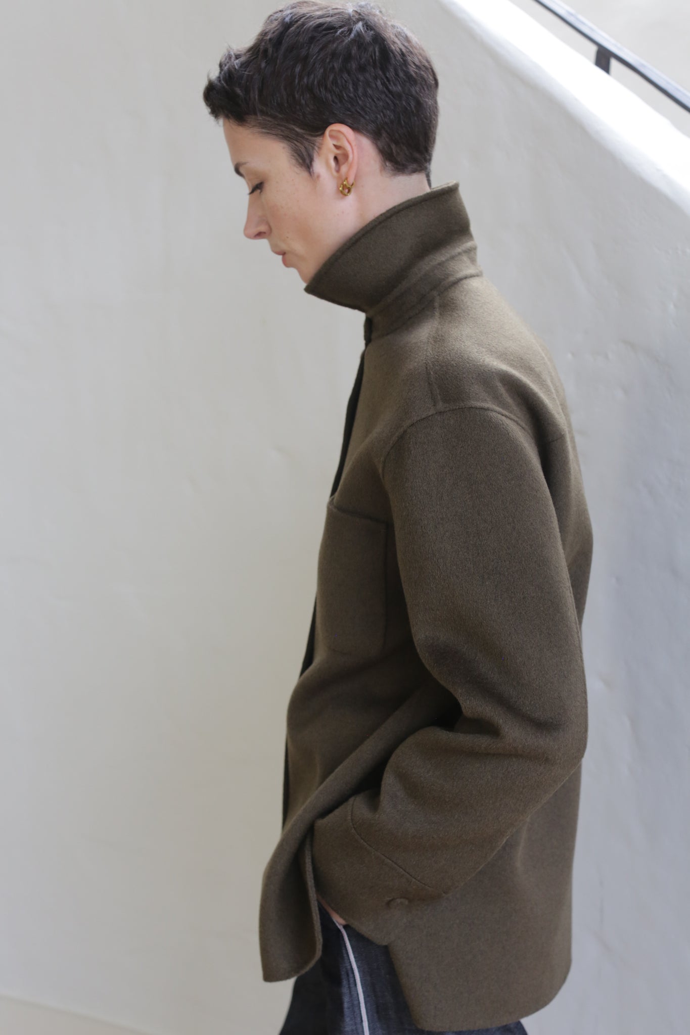 This work shirt has been utterly refined in double face cashmere. Blending functionality with the luxury of pure cashmere, you will not want to take this off. Flip up the collar to wrap your neck in soft warmth. The stylish hem adds visual appeal.