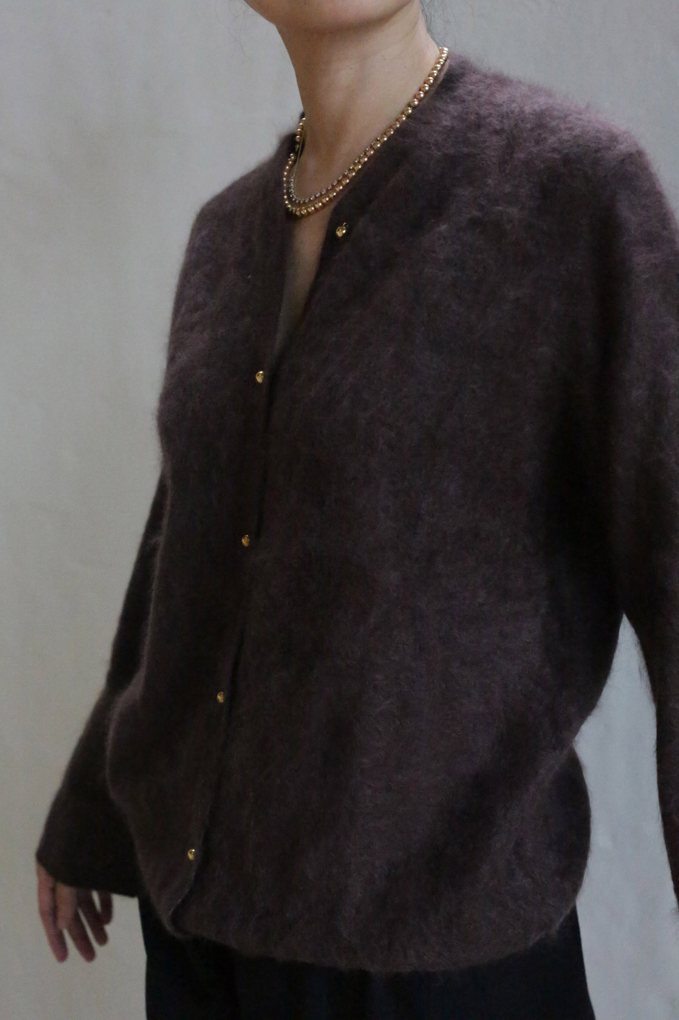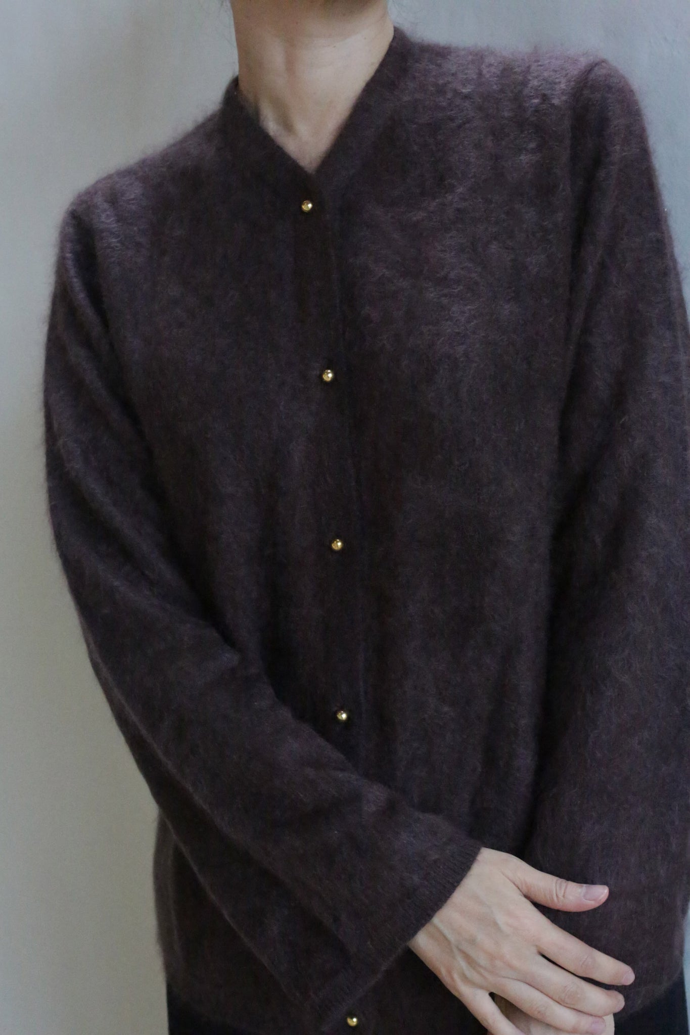 Experience the luxurious embrace of the Brushed Cashmere Cardigan, crafted from long, brushed cashmere staples that offer a sumptuous texture. This relaxed knit cardigan features straight sleeves, a line of gleaming brass buttons and a high neckline that softly frames the neck when buttoned up. Designed for a cozy yet elevated feel, its lightweight warmth and gentle drape make it an effortless layering piece for the cooler months.