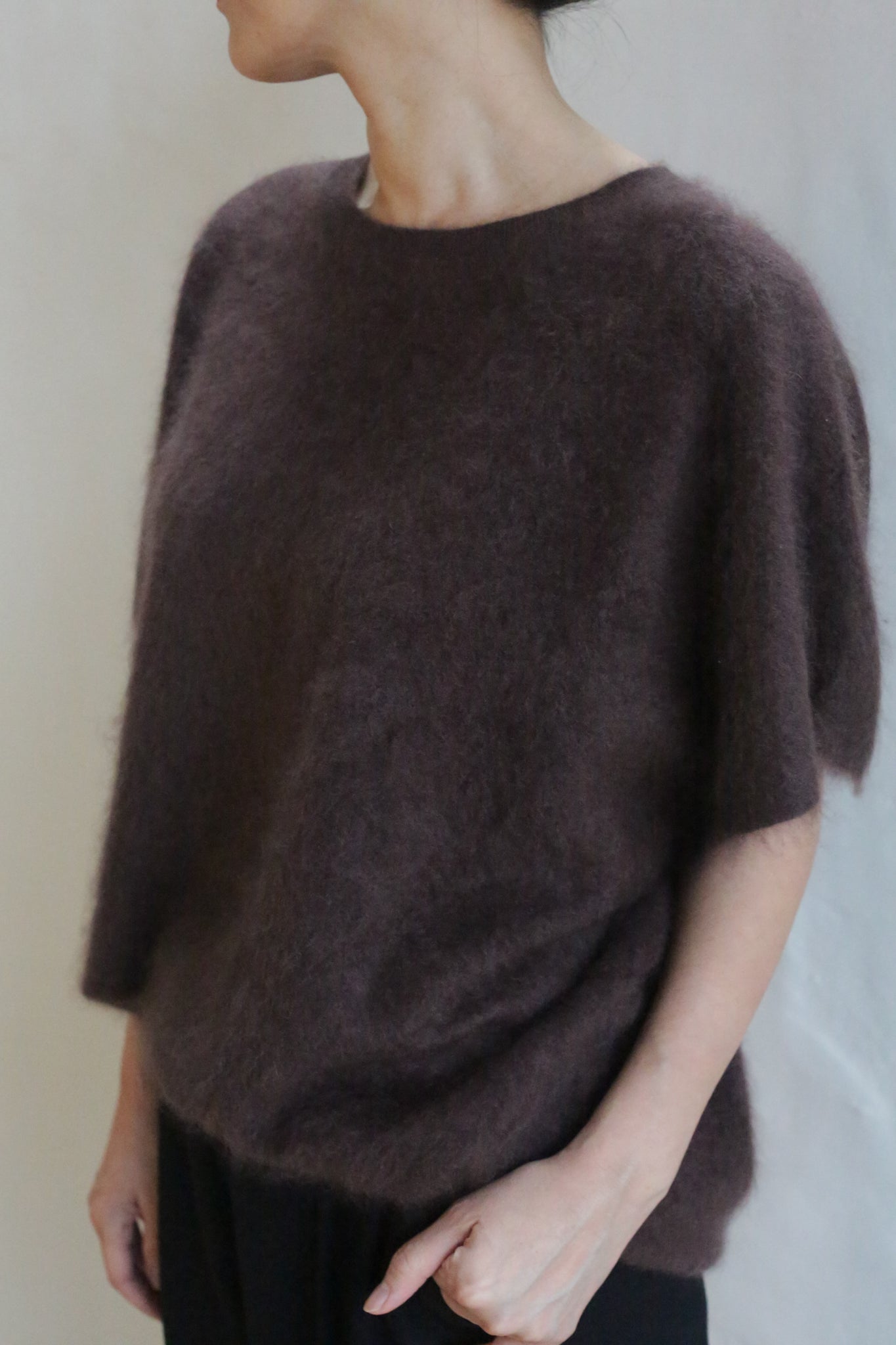 Brushed pure cashmere creates ethereal texture and luminosity. Wear as a structured vest or, thanks to a hidden button, unfold sleeves and find yourself in the soft embrace of a short-sleeved blouse. Here in Mink.